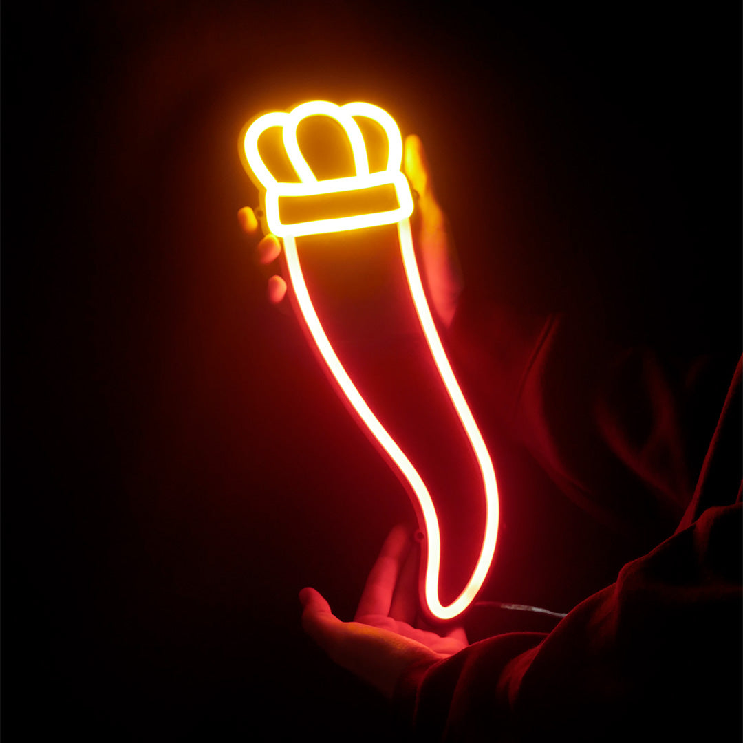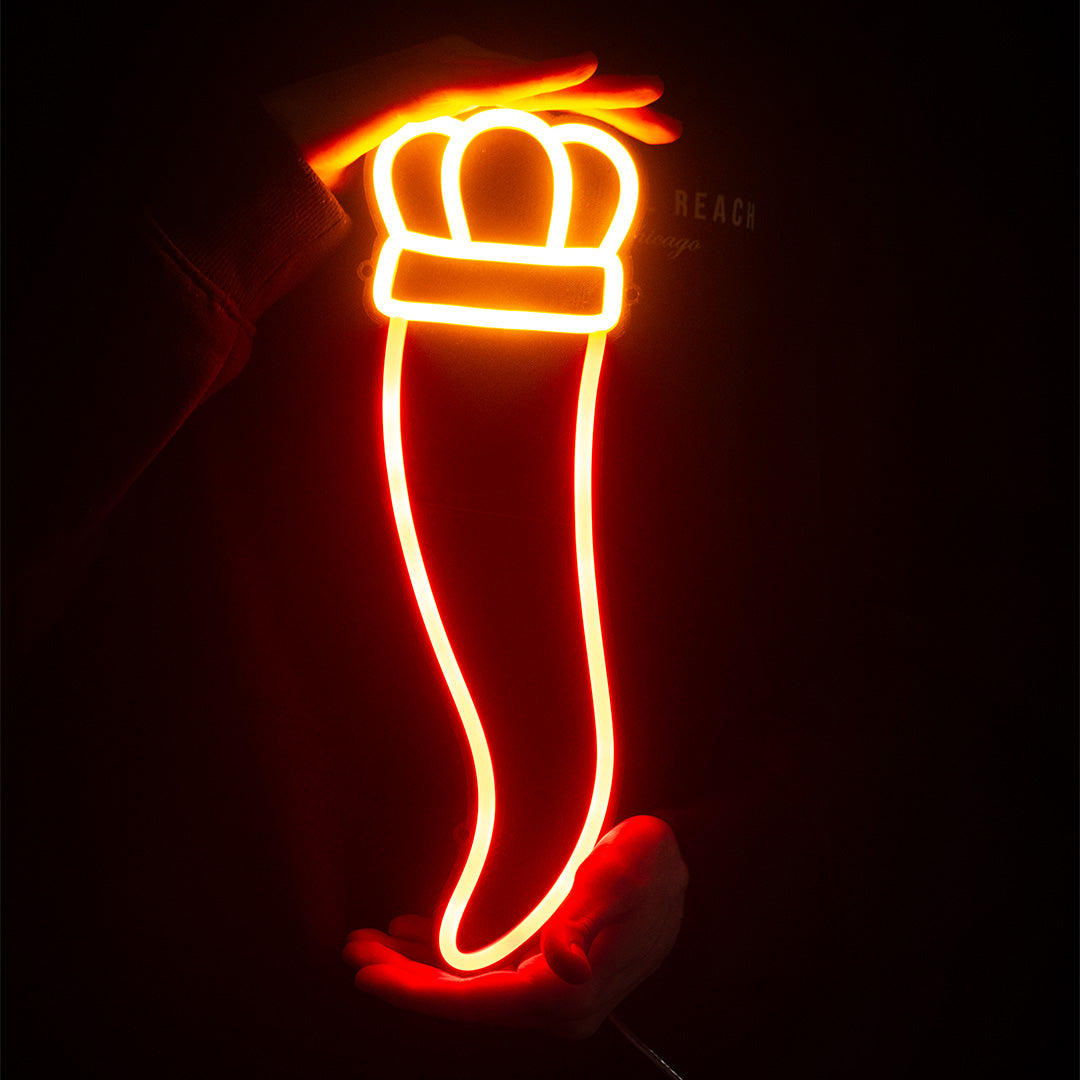 Una rappresentazione artistica e moderna del curniciello napoletano, con il suo colore rosso intenso, crea un'atmosfera unica.